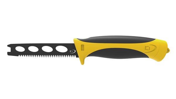 Beskyttelse for fingrene Lås som sikrer at kniven holder seg i sliren Gummiert overflate for bedre og varmere grep Større håndtak for bedre grep Ring bak på håndtaket for feste
