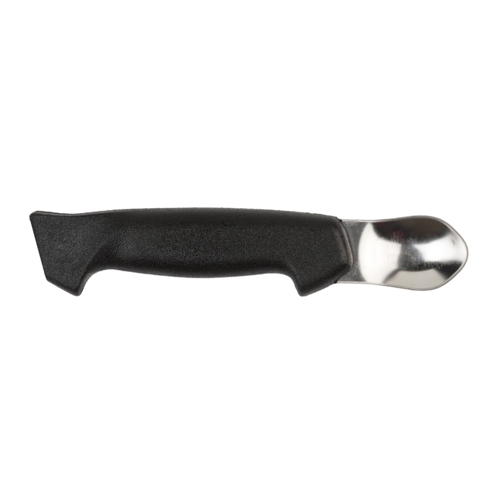 Skje/blad i rustfritt stål. Håndtak i lettgrandulert polypropylen.
