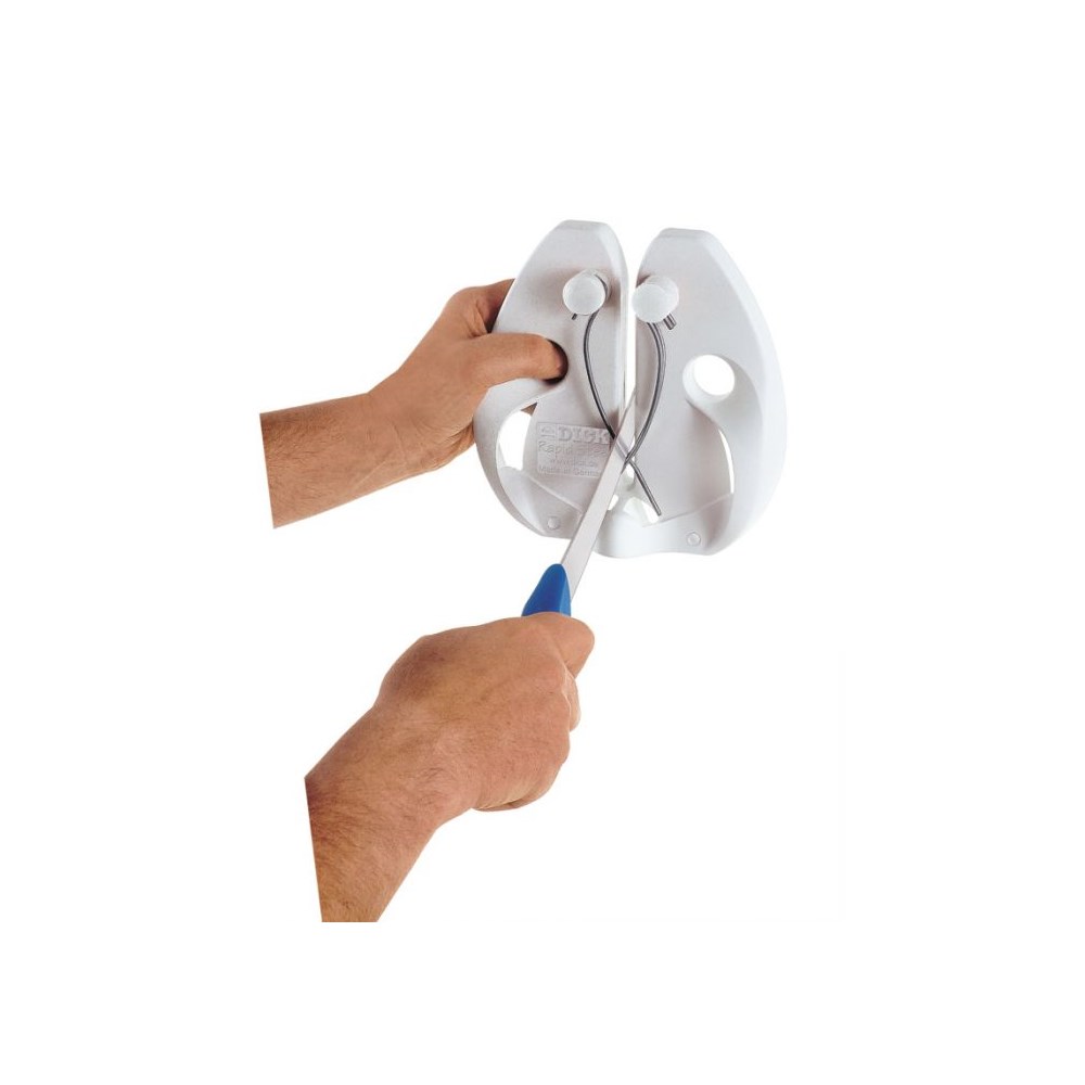 Hurtigstål Rapid Steel. Dicks klasikker! Har et godt håndtak og finnes i to varianter, dette har skjerpestenger m/ superfin slip. Alle Dicks hurtigstål har tre fjærbelastede skjerpestenger. Det sørger for at trykket og vinkelen på kniveggen blir perfekt hver gang. Skjerpestengene holder som i alle Dick produkter, den høyeste kvalitet og kassetten med fjærene er sveiset og derfor 100% hygienisk. Hurtigstålene er meget enkle å bruke og kan opereres av alle.