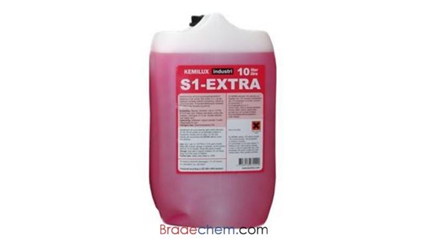 S-1 Extra er en sterk alkali som lett fjerner fett, protein, sot, olje og annet smuss fra alle overflater.