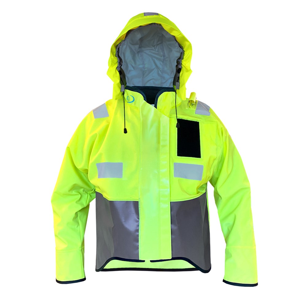 Neoprenmansjetter og lukkeklaffer på armene • Lomme for VHF radio • Vanntett lomme for mobil under frontklaffen • Lukking: Glidelås og klaff med borrelås • Avtagbar hette i mykt materiale, tilpasset hjelm • Reflekser • Høyt snitt, gir økt bevegelsesfrihet og mindre vekt
