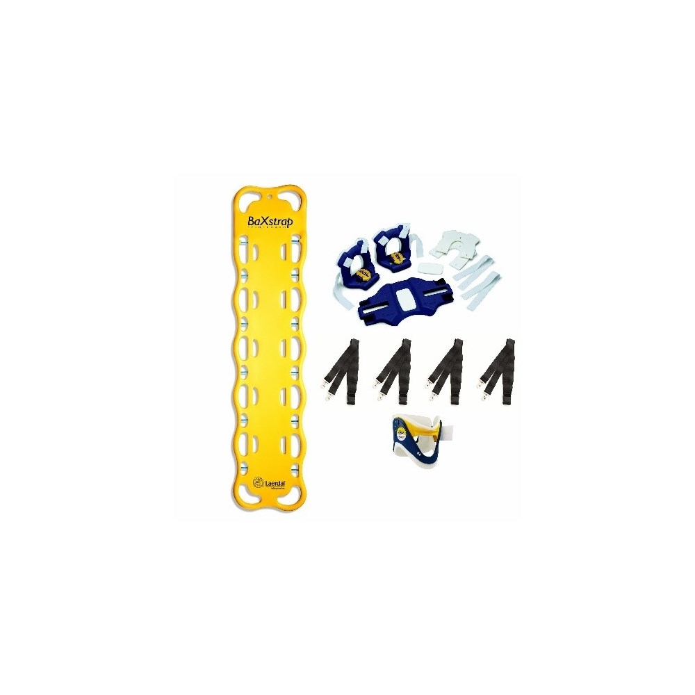 BaXstrap fra Laerdal er designet for å gi enestående støtte og komfort under akuttbehandling. Boardet er preget av å være stivt og samtidig lett i vekt, da det er laget av holdbar karbonfiber. Siden BaXstrap er utført i et vanntett materiale, og har en vektkapasitet på 1100 kg, er det ideelt for bruk under alle værforhold og spesielt egnet for redning i vannmiljøer.