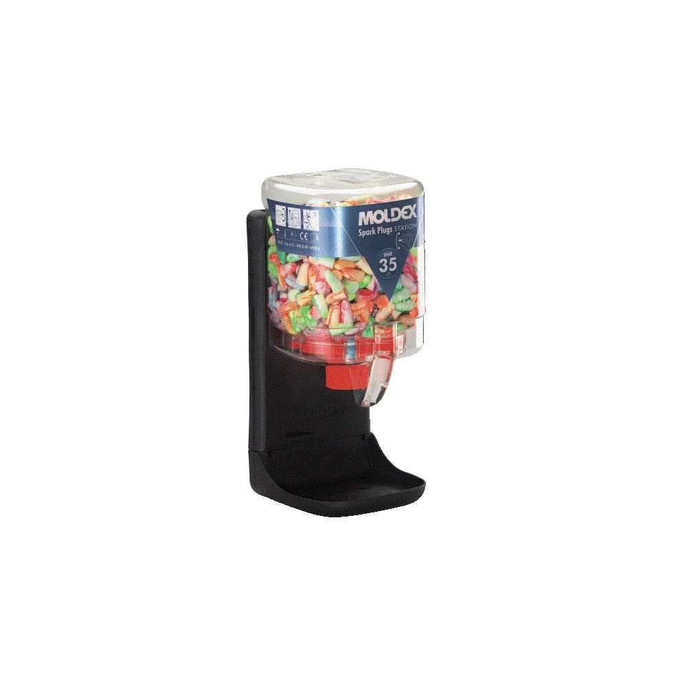 Konisk fasong med innsving - lett å sette inn i øret. Friske, moteriktige farger. Moldex Station automat á 250 eller 500 par. Lett synlig og lett tilgjengelig. Eliminerer emballasjen på proppene. Monteres på vegg ved hjelp av brakett 7060. Erstattes av en ny automat når den er tom.