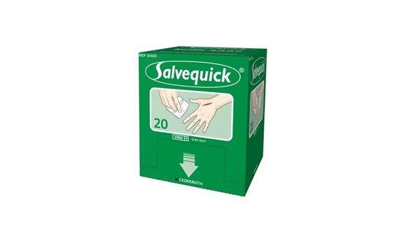 * 20 stk. sårservietter med steril fysiologisk koksaltoppløsning