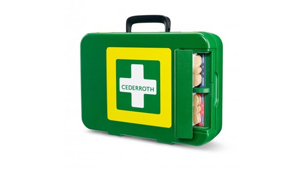 Innhold: Førstehjelpsinstruksjon, 1 pustemaske, 4 par engangshansker, 4 Safety Hand Cleanser, 1 redningsteppe, 1 saks, 1 pinsett, 45 Salvequick plastplaster, 40 Salvequick tekstilplaster, 10 Salvequick sårvask, 3 Cederroth 4-in-1 blodstopper, 4 Cederroth 4-in-1 mini blodstopper, 3 metalliserte kompresser 20 x 40 cm, 2 festenett, 2 Cederroth Burn Gel kompress, 2 Soft Foam plaster 6 cm x 40 cm, 2 elastiske bandasjer 8 cm x 4 m, 1 Salvequick ispose, 1 øye-/sårrens spray