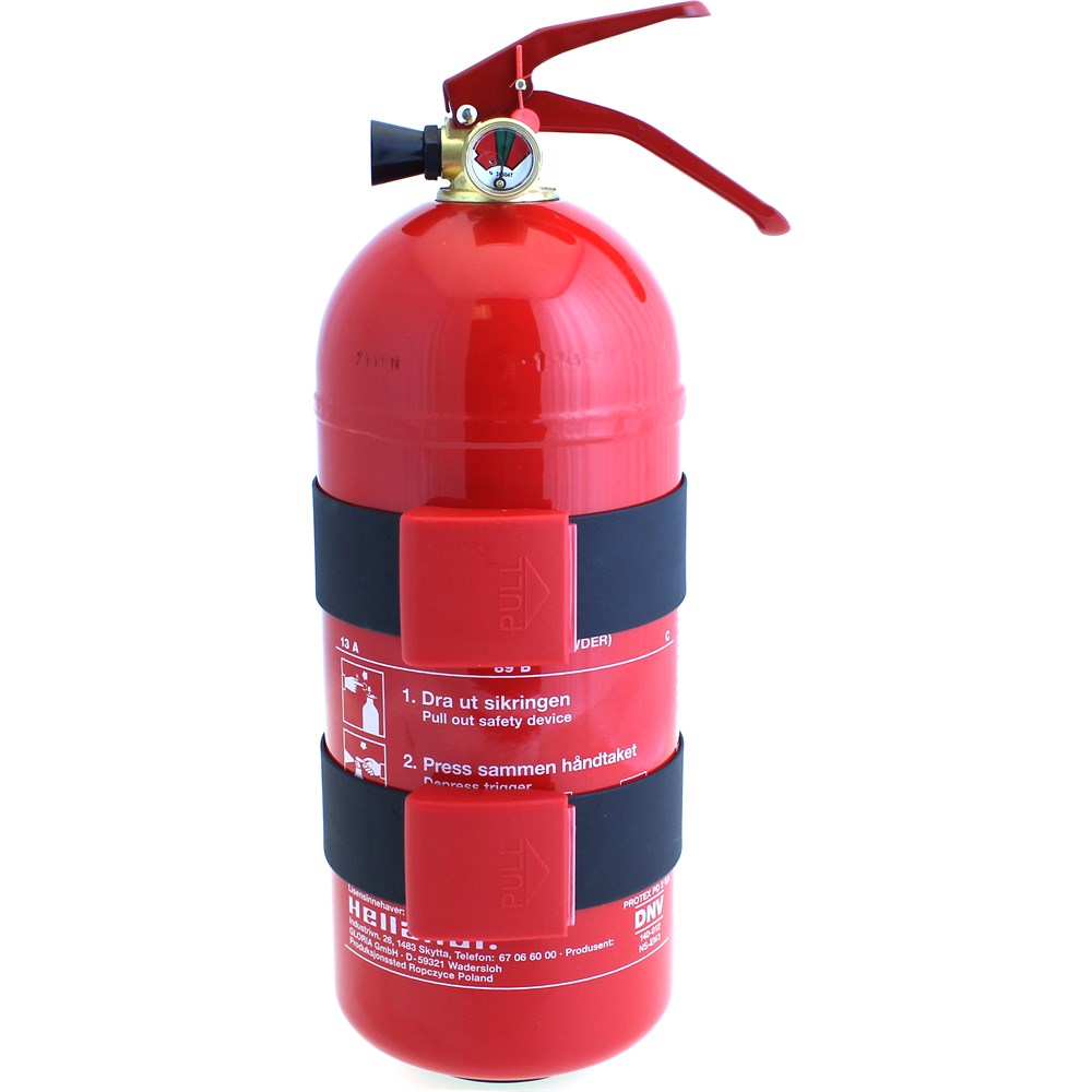 2 kilo prisgunstig pulverbrannslukker. Leveres med brakett for montering i båt eller bil. Lengde: 330 mm Diameter: 110 mm