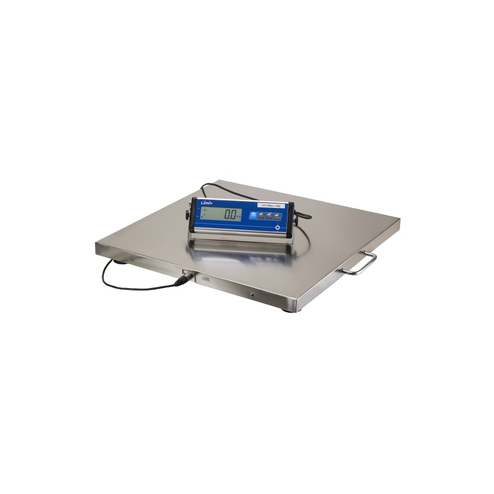 Funksjonstaster for null, vektenhet, tara, netto/brutto. Rustfri belastningsplate. Nett- eller batteridrift. Leveres med lader og oppladbart batteri. Batteridrift opp til 80 timer.