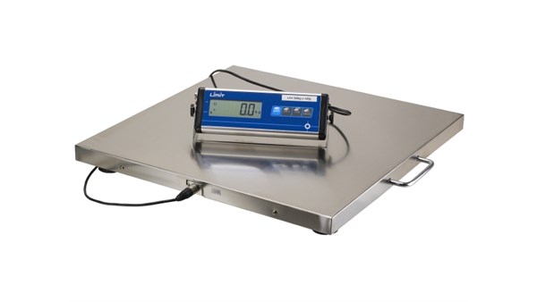 Elektronisk pakkevekt med digital visning. Plattform og displayenhet separat.