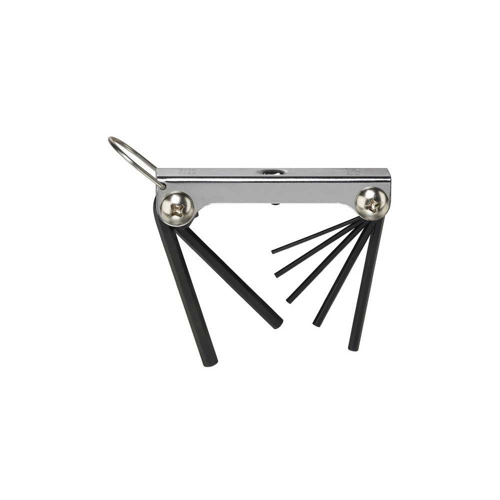 "Luna" Sexkantnycklar av kromnickelstål, infällbara i förkromade handtag. Med upphängningsbygel. Nycklar till olika skruvar med sexkanthål (sänkhuvud) enligt SMS och ISO