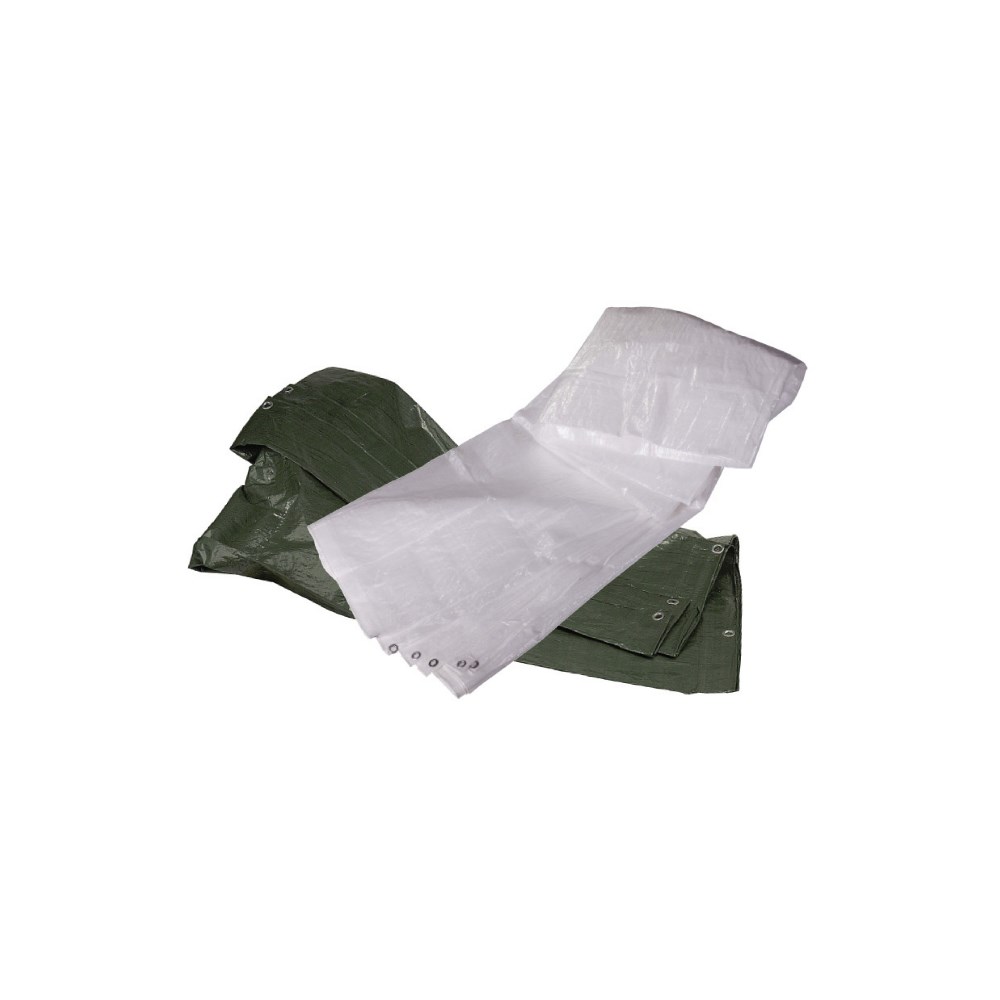 Sterk og lett presenning for kort beskyttelse utendørs, kan også brukes innendørs. Letthåndterlig, vanntett og muggbestandig er også syre-, alkali- og saltresistent. Målene som angis er klipte mål/cut size.