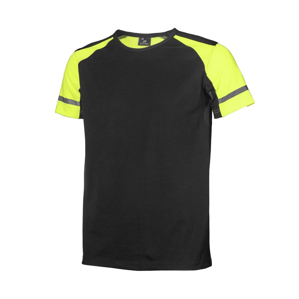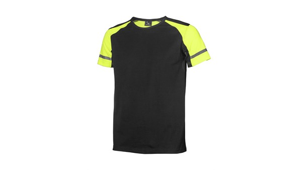 T-skjorte med rund hals. Synlighetsdetaljer og mørkegrå reflekser. Pustende materiale. Ventilasjonsstoff under ermene.