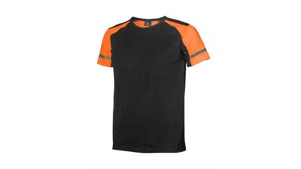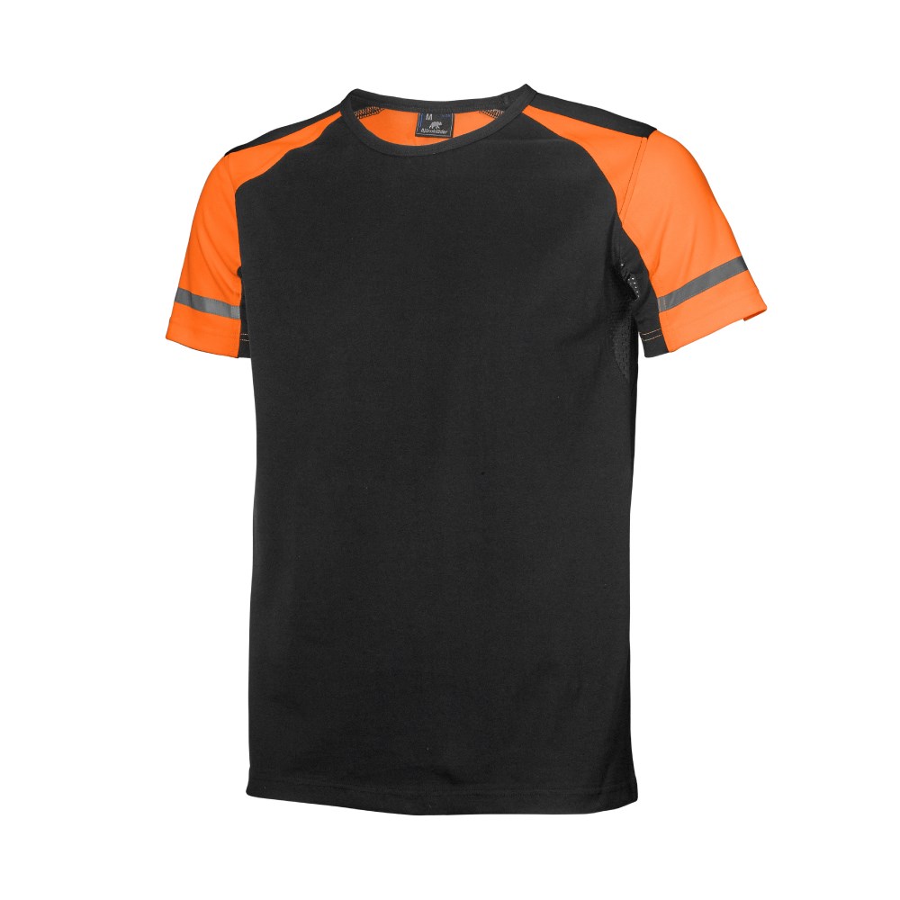 T-skjorte med rund hals. Synlighetsdetaljer og mørkegrå reflekser. Pustende materiale. Ventilasjonsstoff under ermene.