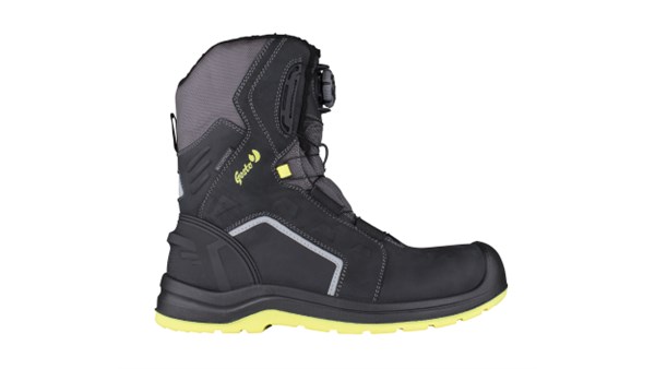 For utendørs tøft bruk, bygg og anlegg, håndverk, mekanisk industri, transport etc. Godkjent for bruk i ESD områder hvor statisk elektrisitet kan forårsake skade på følsomt elektronisk utstyr. Overdel i svart vannavstøtende lær med refleksdetaljer. Vanntett og pustende membran. Syntetisk pelsfôr i 100% polyester. Boa L6 snøresystem, lett å ta skoen av og på. Polstret toppkant og pløse. Vekt kun 910 gram (1 stk str. 42). Pustende og antibakteriell innersåle. PU mellomsåle. Gummi yttersåle, varmebestandig, oljebestandig og antistatisk. Sklihemmende egenskaper på keramiske fliser og stålunderlag (SRC). Tåforsterkning i PU. Tåvernhette og spikertrampsåle i kompositt.