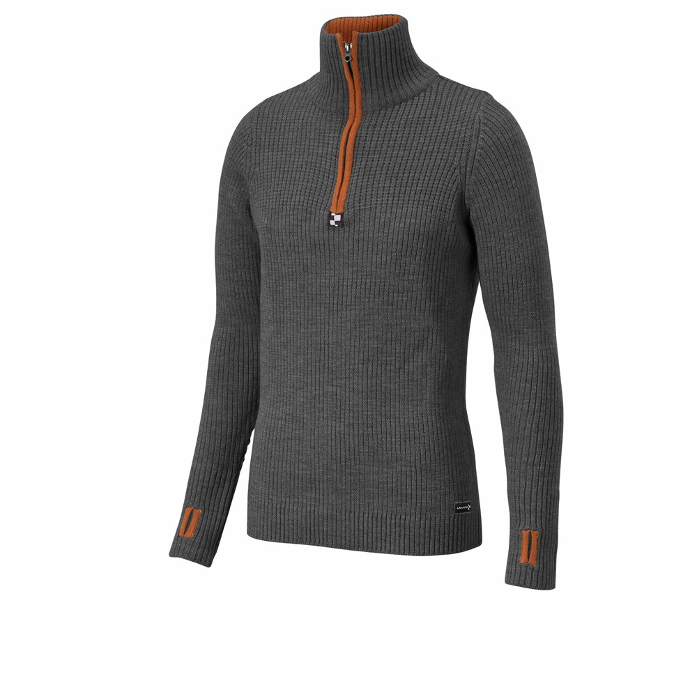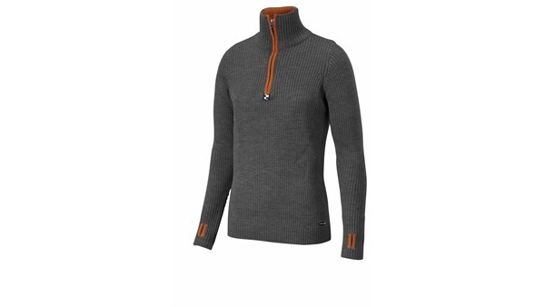 Strikket ullgenser med høy hals og glidelås. Forsterkning på albuer. Tommelgjennomgrep nede ved ermet. Gir god isolasjon og varme som lag 2 eller som ytterste lag på vår/høst.