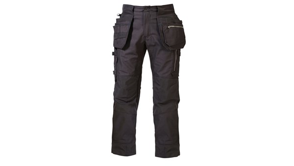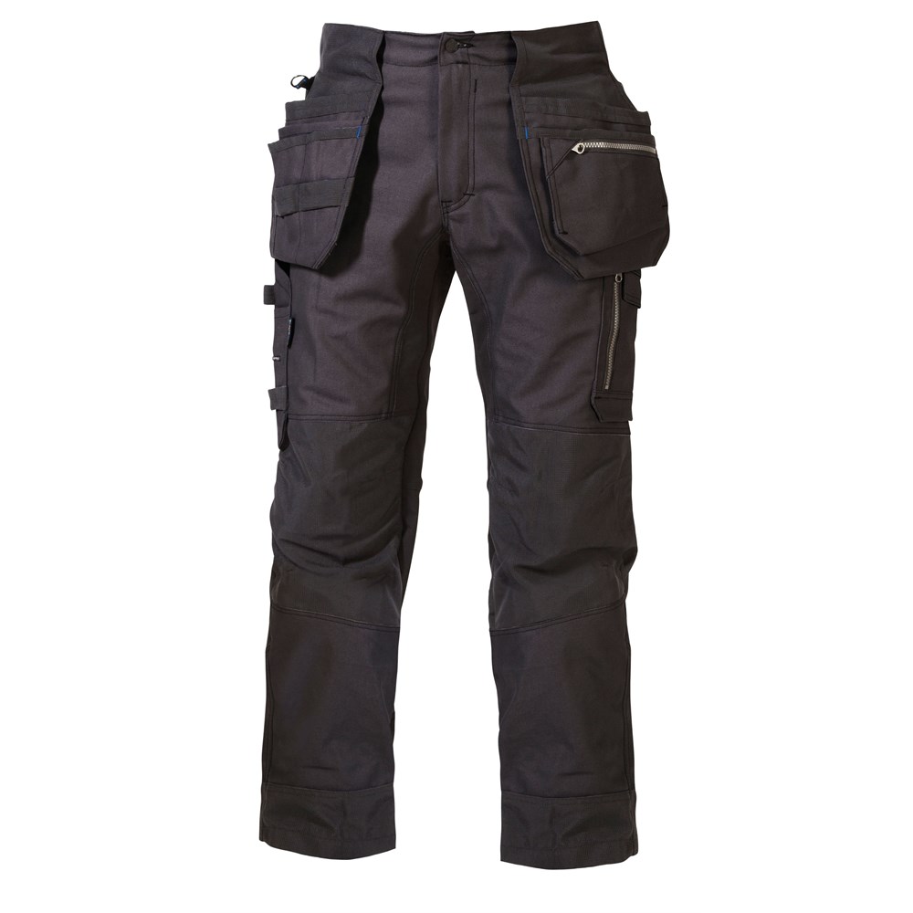 Bukse med stretchpartier i skrittet, baken og bein for maksimal komfort og bevegelse. Forsterkede hengelommer i front. Mange praktiske lommer og detaljer. Borrelåshempe for feste av hammerholder. Beinlomme med glidelås. Mobiltelefonlomme. Forsterket med polyamid på knær. Knelommer for kneputer art. KPW290 og art. KPS290. ID-lomme.