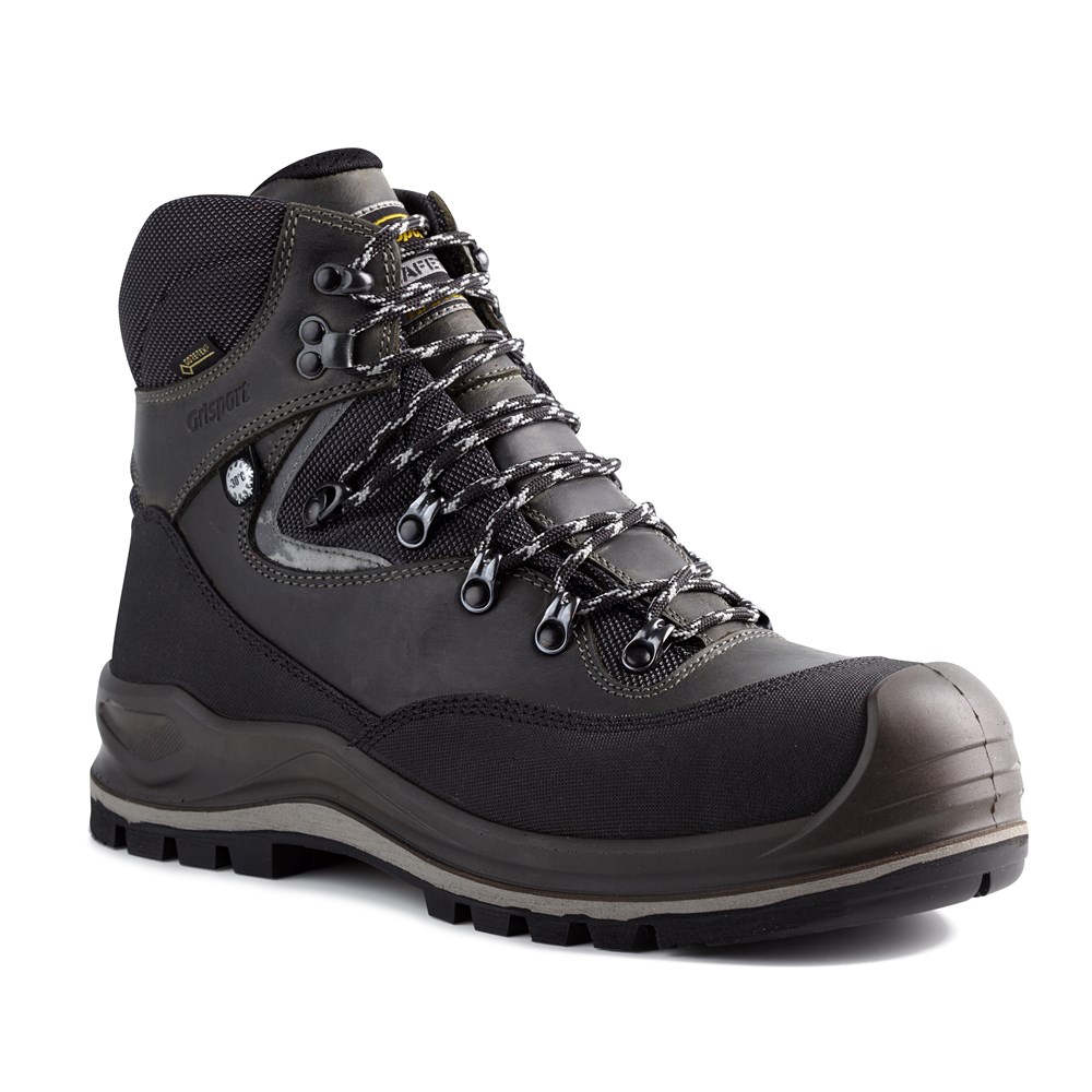 For vinterbruk, fuktig arbeid innen bygg og anlegg, mekanisk industri etc. i temperaturer ned til -30°C. Overdel i mørk grå og svart skinn, med refleksdetaljer. Syntetisk pelsfôr i 100% polyester. Vanntett Gore-Tex membran. Uttagbar innleggssåle. Tåforsterkning. Vibram gummi yttersåle, varmebestadig og antistatisk. Sklihemmende egenskaper på keramiske fliser og stålunderlag (SRC). Vekt 895 gram (1 stk str. 42). Tåvernhette i glassfiber. Spikertrampsåle i kompositt.