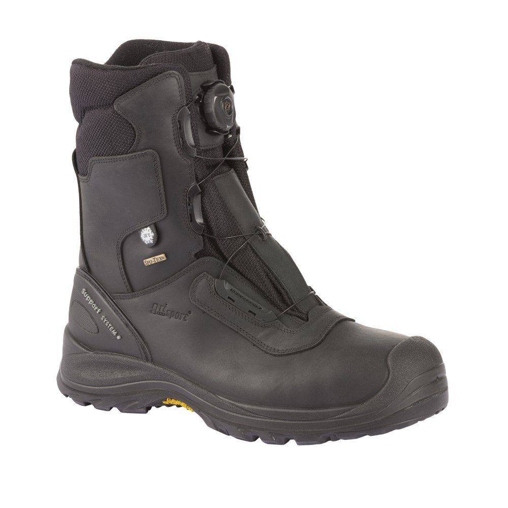 For utendørs bruk, vinter, bygg og anlegg, håndverk, mekanisk industri, transport etc. For bruk i temperaturer ned til -30°C. Vanntett membran. Overdel i svart Dakar oksehud, minimalt med sømmer. Boa M3 snøresystem, lett å ta skoen av og på. Vibram gummi/PU oljebestandig og antistatisk såle. Sklihemmende egenskaper på keramiske fliser og stålunderlag (SRC). Syntetisk pelsfôr i 100% polyester. Uttagbar innleggssåle. Tåforsterkning i PU. Vekt 824 gram (1 stk str. 42). Tåvernhette og spikertrampsåle i kompositt.