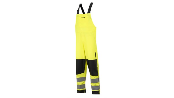 Regnbukse i slitesterk, lett og myk kvalitet. Regulerbare seler. Vanntett glidelås opp til kneet. Justeringsmulighet nede på beinet. Baklomme og tommestokklomme med drenering. Ekstra forsterkningsmateriale på knær og nede på beina.