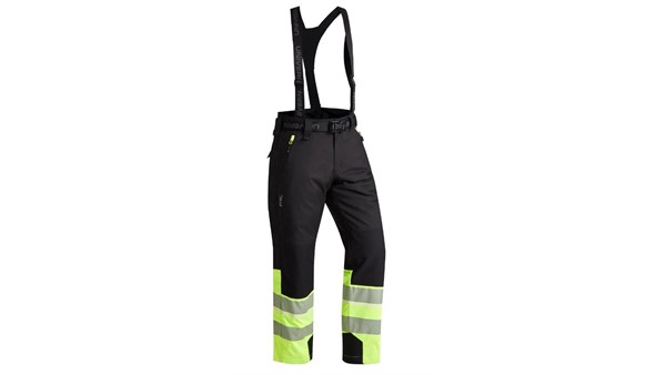 Helt vind- og vanntette vinterbukser i Dope-dye-innfarget tekstil. Fôr i gjenvunnet polyester. Høy isoleringsverdi som holder deg varm på kalde dager. God bevegelseskomfort med bl.a. forbøyde bukseknær og med ekstra høy linning i rygg. Avtakbart elastisk belte og seler. 2-veis glidelås i bukseben hele veien opp til midjen. Regulerbar fotvidde med snølås. Innvendige knebeskytterlommer. Tommestokklomme. Velcrofester for hammerholder. Forsterkningsmateriale på knær og benavslutning. To baklommer med klaff og to forlommer med vanntette glidelåser og mykt, varmende fôr. Segmenterte reflekser og Signal Lucence-teip for økt synlighet og sikkerhet. Vannsøyle: 20.000mm. Pusteevne: 22.000g/m²/24h. Miljømerking: Oeko-tex, Dope-dyed. Certifikat: EN 20471 kl.1, 25 vask. EN 343 4,1,X. EN 342