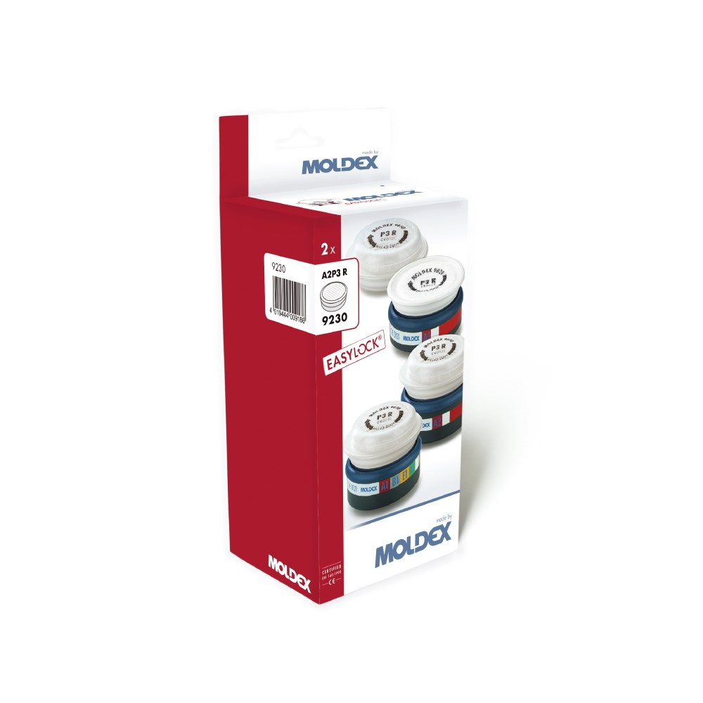 A2P3R Easylock filter til Moldex 9000 helmaske og Moldex 7000 halvmaske. Leveres i blisterpakning med 1 par filter.