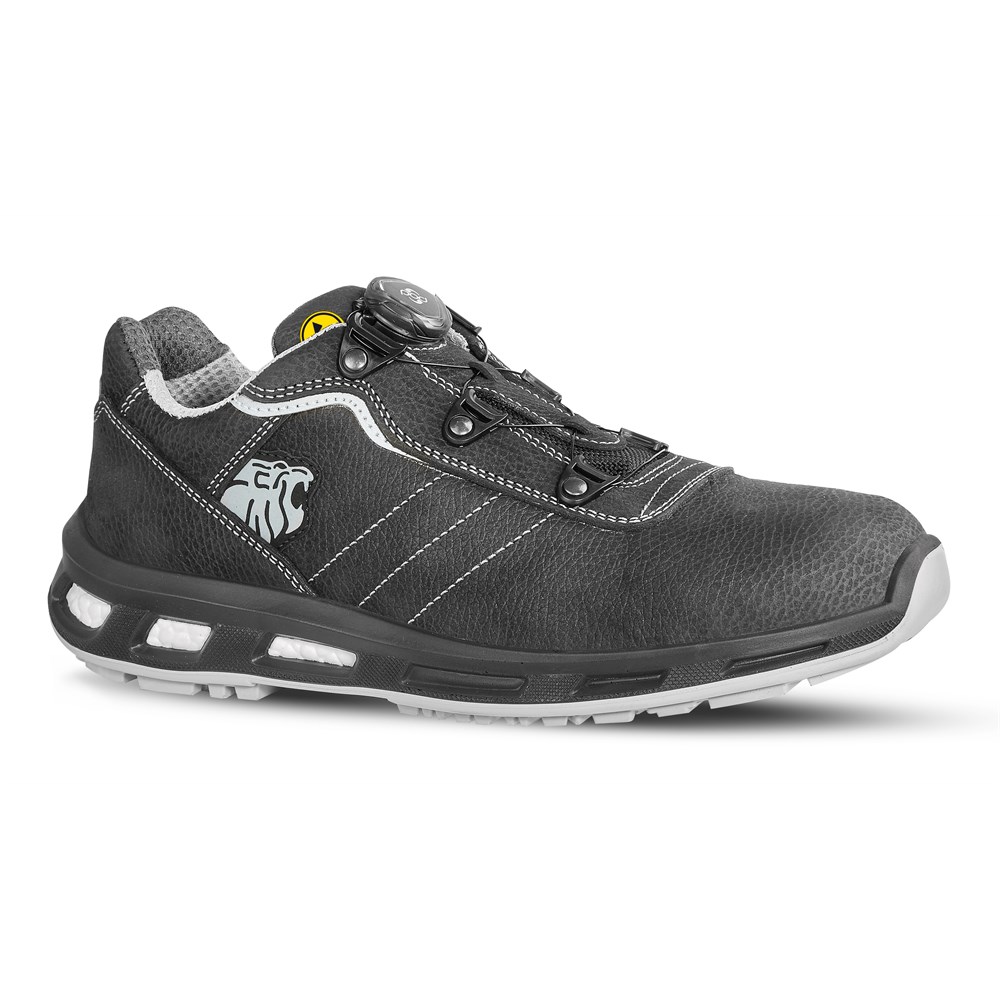 For arbeid inne og ute, lager, lettere industri, service, transport, håndverk, lager/logistikk etc. Godkjent for bruk i ESD-område hvor statisk elektrisitet kan forårsake skade på følsomt elektronisk utstyr. Svært gode dempende egenskaper med Infinergy mellomsåle fra BASF. Boa L6 snøresystem, lett å ta skoen av og på. Overdel i vannavvisende, mykt nubukskinn. WingTex pustende fôr. Vekt 582 gram (1 stk i str 42). Yttersåle i PU, oljebestandig og antistatisk. Sklihemmende egenskaper på keramiske fliser og stålunderlag (SRC). Polstret pløse og hælkappe. Tåvernhette i perforert aluminium. Spikertrampsåle i kompositt.