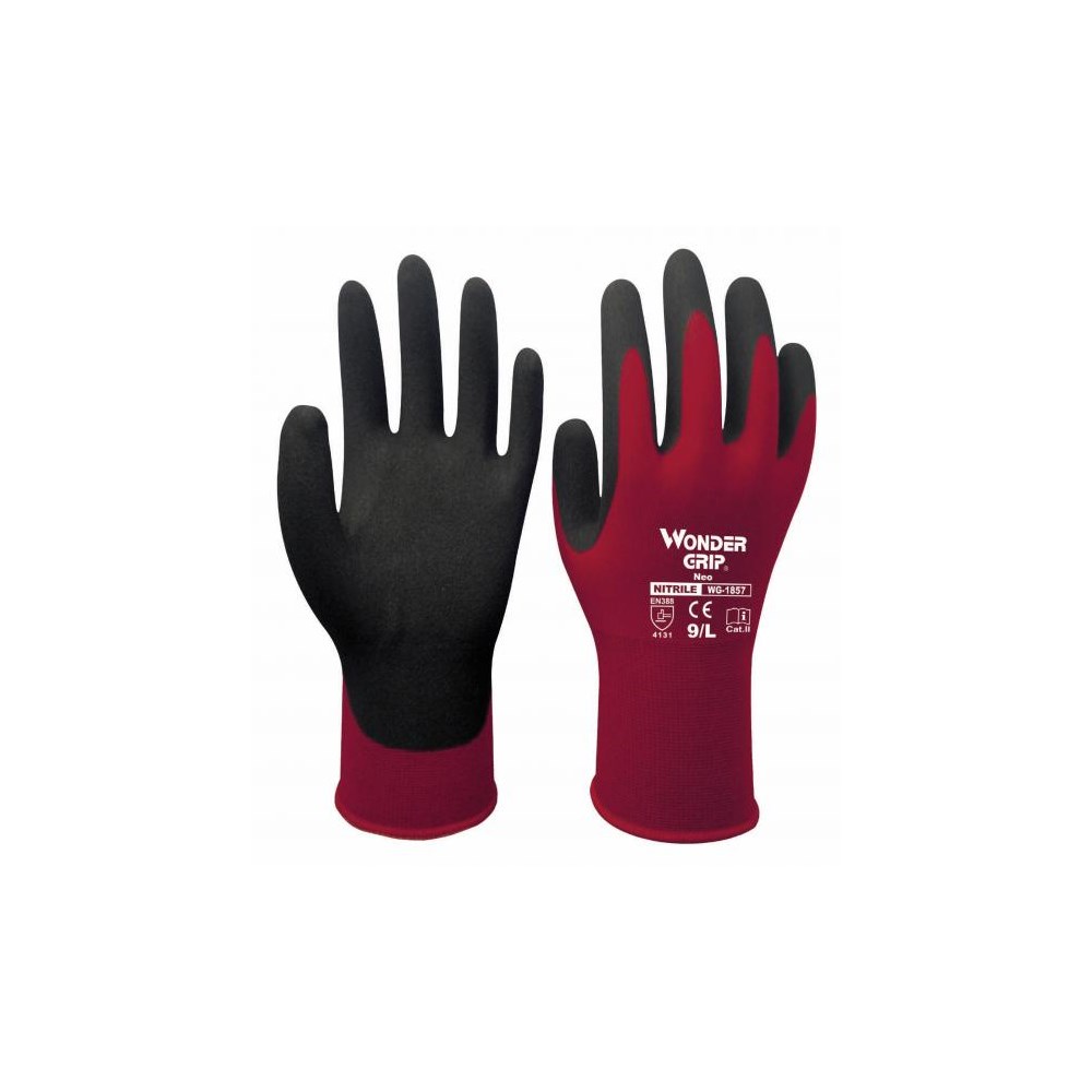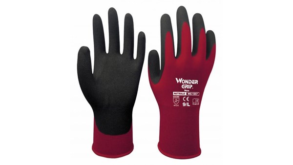 • Nitrilbelagt hanske i tettvevd nylon og spandex, halvdyppet • WonderGrip teknologien sørger for bedre komfort og gripeevne sammenlignet med vanlige nitrilhansker • Ekstra godt grep i vått og oljete miljø, ekstra pustende og komfortabel, ekstra smidig og elastisk • Elastisk ribb • Lengde 23-26 cm