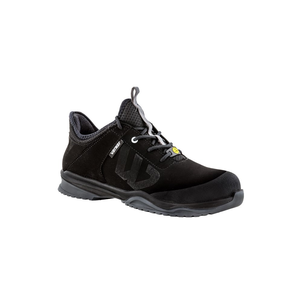 Tradisjonell sko med moderne design. Overdel av microfiber. ESD-godkjent, lett og metallfri med myk spikertrampbeskyttelse gjør at skoen oppleves svært komfortabel. Behagelig og uttagbar Work Comfort EVO innersåle.