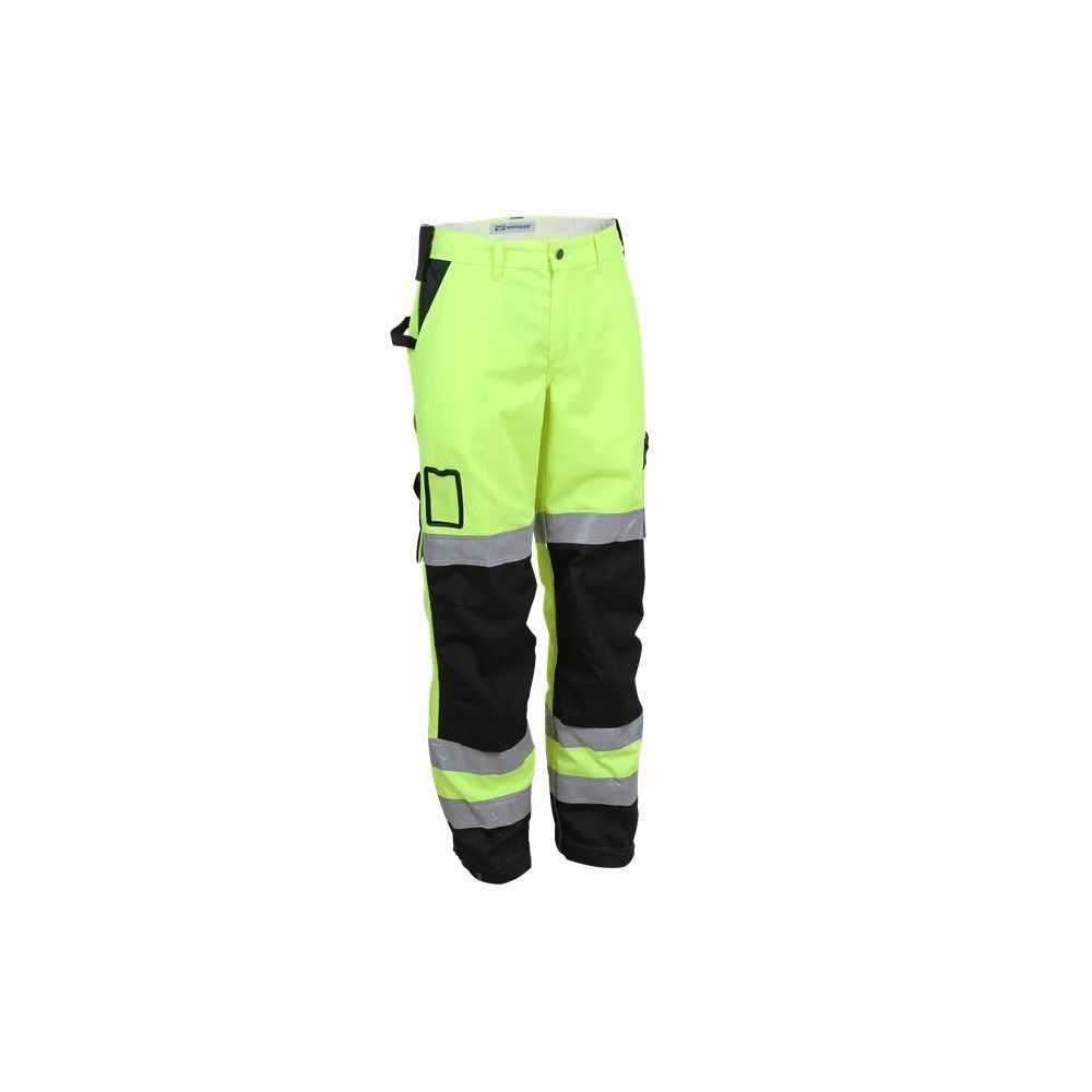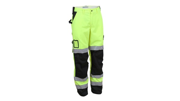 Linning med en metallknapp i front, beltestropper, 1 stor hammerholder på begge sider, glidelås i gylf og kile i skritt for bedre bevegelighet. Buksen har 2 sidelommer, 2 baklommer, 1 hammerholder, 1 tommestokklomme, 1 pennlomme, 1 liten knivholder, 1 dobbel lårlomme med klaff, 1 ID-kortlomme og knelommer. Modell har refleksbånd rundt legg og lår, og justerbar benlengde og benbredde.