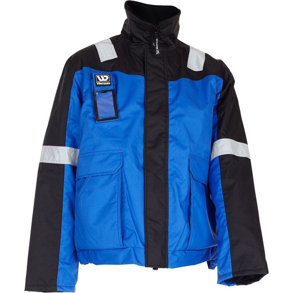 Vann-, vindtett og pustende Qualitex membran. Vattert fôr. Refleks på skulder og erme. Fleecefôr i krage og framlommer, glidelås skjult under stormklaff i front, strikk i liv, ribb i avslutning erme. Kartlomme, mobillomme med utvendig ID-kortlomme, doble framlommer med klaff og sideåpning.