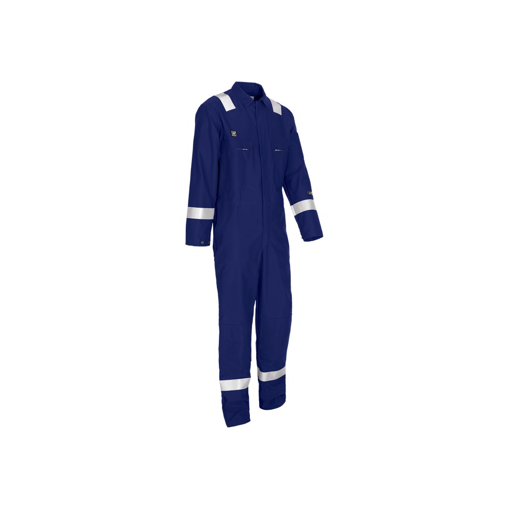 Komfortabel flammehemmende kjeledress med skjult to-veis glidelås i front. Stående krage, fold i rygg gir god bevegelsesmulighet og flere praktiske lommer. Strikk i livet gjør at dressen sitter godt på. Justeringsmulighet i avslutning av erme. Kjeledressen egner seg godt for deg som trenger beskyttelse mot ild og flammer.