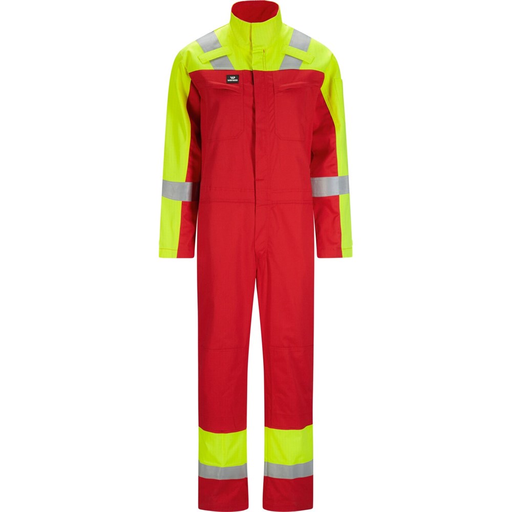 Kjeledress Marinerguard dame: Stående krage, 2-veis glidelås under frontklaff, strikk i midjen, brystlommer med klaff og skjult glidelås, ermlomme, tommestokklomme, kneputelommer med høyderegulering, viddejustering på ermer og ben, refleks på ermer, ben og skuldre.