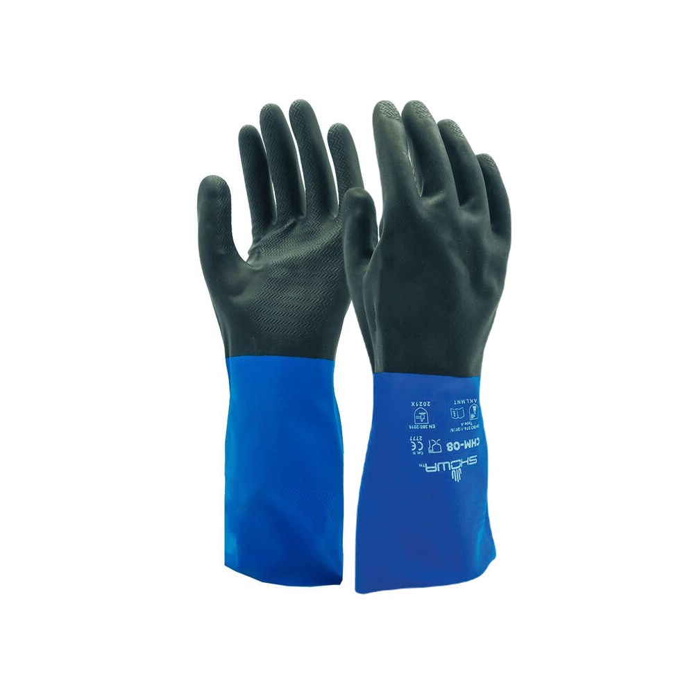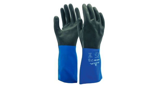 Dobbeltdyppet neopren over naturgummi. For bruk i miljøer der man er eksponert for kjemikalier og løsemidler. Neopren over naturgummi gir ekstra smidighet og reduserer håndtretthet.