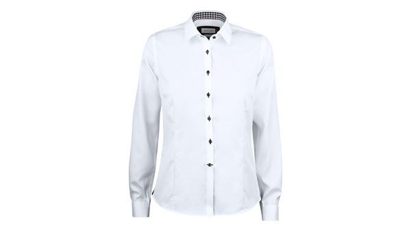 • Semi cut-away collar • Non-iron patented environmental treatment • Solid colors with contrasts • 100 % Long staple 2-PLY compact cotton, 124 g/m² • Split back yoke • Taped main-seams (no wrinkles) • Tall, 4 mm-thick buttons • Single angle cuff, w. cufflink hole • Flat Front placket • Curved hem • Longlasting white