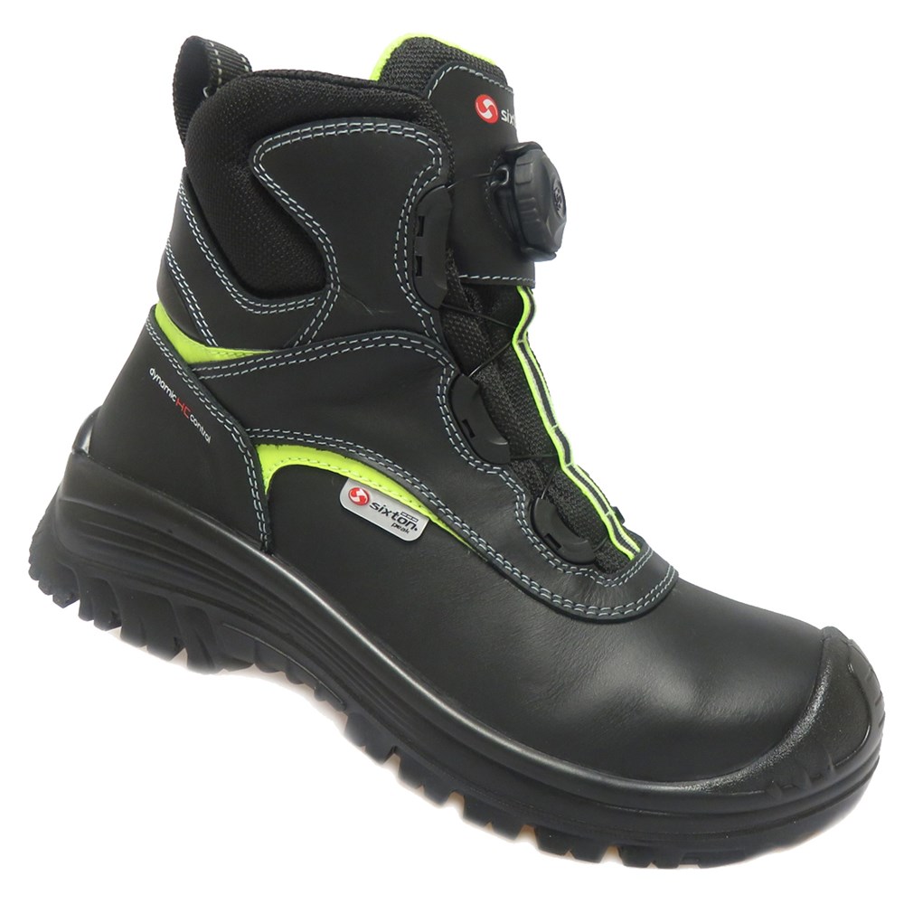 Verneskolett i fullnarvet kvalitetslær. Vernetå i kompositt og spikertrampsåle i tekstil. 3D-innerfôr for ekstra god ventilasjon og fukttransport. Mellom- og yttersåle i to-komponent PU for god demping og slitestyrke Boa® lukkesystem. Farge: Sort med lime detaljer. Vekt pr sko i str 42: 770 g.