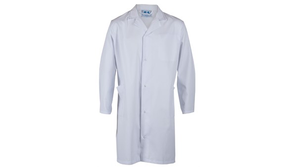 Frakk med spensel i rygg, trykknapper i front, innvendig brystlomme og to sidelommer. Unisex.