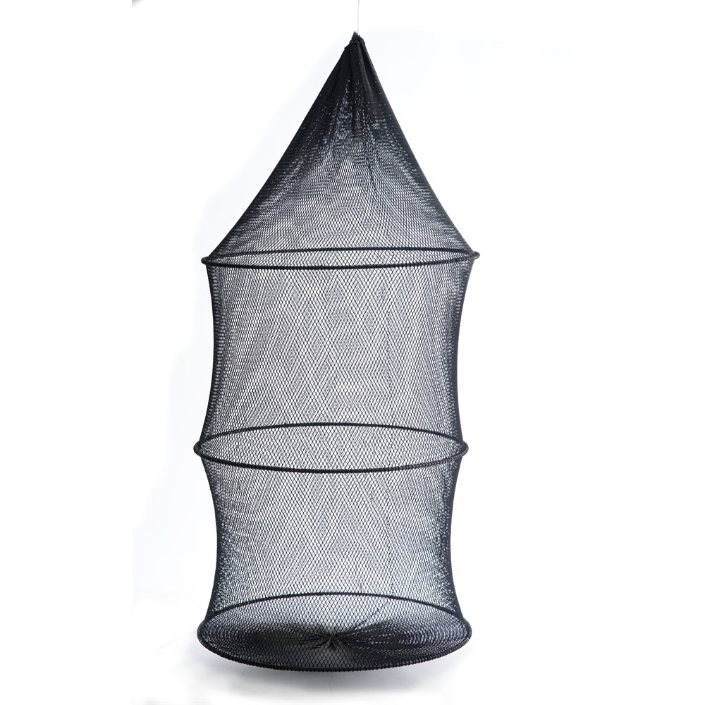 Nett/mære til mellomlagring av fisk, leppefisk og hummer. Her har vi brukt knuteløs bus for mest mulig skånsom behandling av innholdet. 4 plastbelagte stålringer gjør at du ikke behøver ekstra søkke i bunnen av nettet. Ved mellomlagring av leppefisk anbefales at dere bruker skjul i senter av nettet. Da trekker leppefisken inn mot skjulet og slitasjen på fisken blir mye mindre.