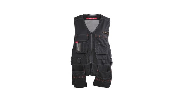 65% Polyester, 35% Bomull, 310g/m². Netting i ryggen: 100% Polyester. Glidelås i front. Sommer/vinterregulering i sidene. Lufting i ryggen. Brystlommer, mobil- og ID-lomme. Forsterkede verktøylommer foran og bak. Beltestropper. Verktøyholder med borrelås i hver side.