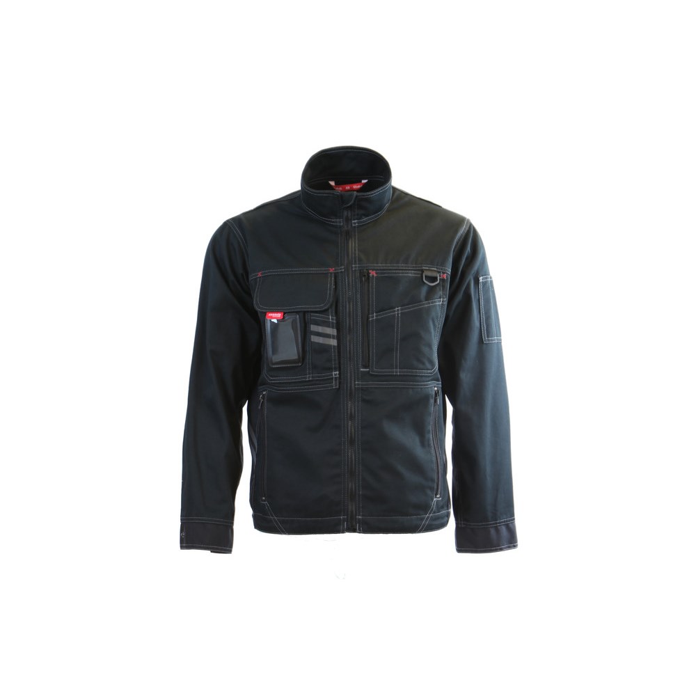 65% Bomull 35% Bomull 305 g/m2. Ekstra god komfort, . Slitesterkt materiale, ?osset bakside. Forsterkning i 100% Nylon for ekstra slitestyrke på utsatte steder. Glidelås helt opp i kragen, Fold i rygg med lufting. Doble brystlommer, høyre med klaff, Mobbillomme og ID-lomme. D-ring i venstre brystlomme, Stikklommer med glidelås. Pennelomme på erme, Mansjett med trykknappregulering. Elastisk snor i nedkant jakke for regulering, Re?eksdetaljer 60 40 60 95. Forsterket på utsatte steder for ekstra slitestyrke, .