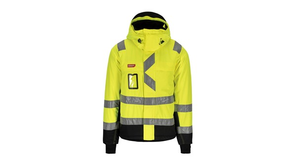 SynligPlus vinterbekledning  er produsert i en myk, elastisk og lett kvalitet.  Metervaren er pustende, vind- og vanntett.  Plaggene kommer i 3 fargekombinasjoner; fluoriserende gul/sort, fluoriserende orange/marine og  fluoriserende rød/ sort.