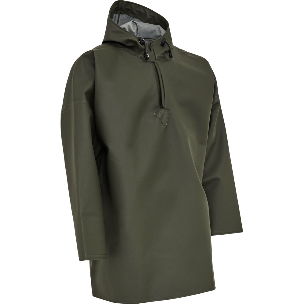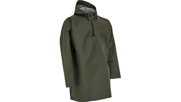 Fast hette med snøring Trykknapp i nakken Doble sveisede sidesømmer Forsterket sveising i belastede sømmer Sveisede sømmer i ermene Olje- og kuldebestandig