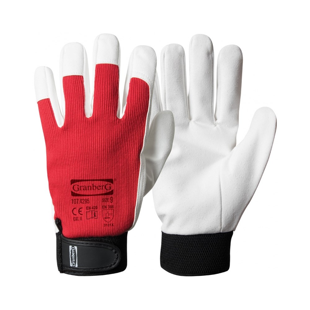 Syntetisk skinn med bomullshåndbak og borrelås, ufôret.