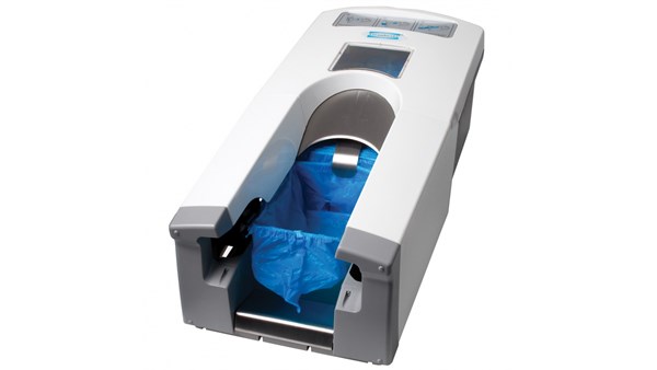 • En pakning med 110 skoovertrekk kan raskt og enkelt legges inn i dispenseren.