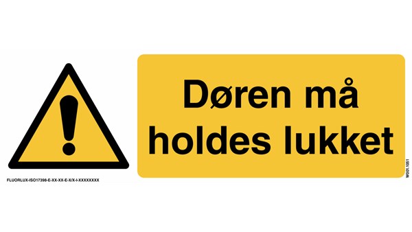 Skilt "Døren holdes lukket" 30x10cm