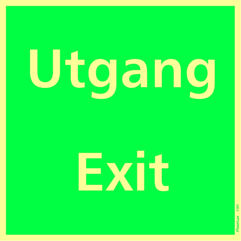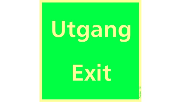 Skilt selvlysende UTGANG, EXIT 20x20cm (H)