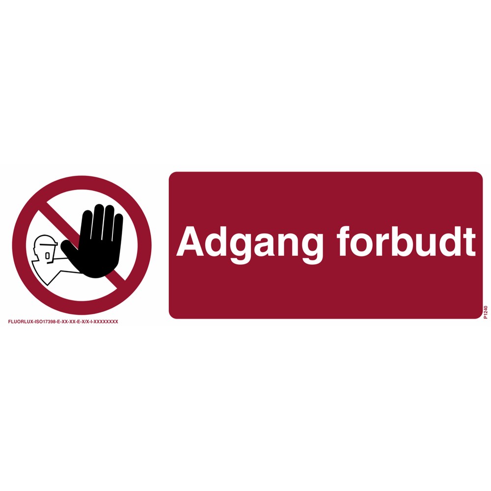 Skilt "Adgang Forbudt"/No admittance 30x10cm