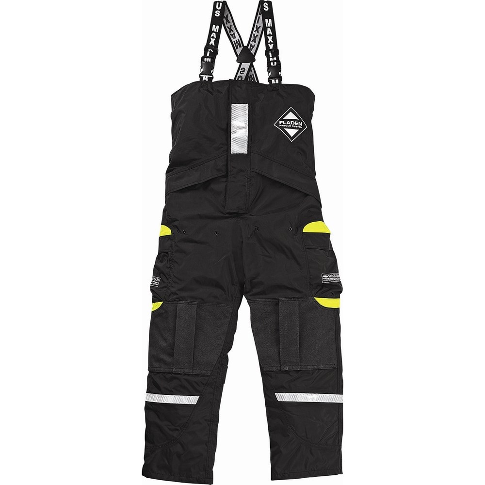 Black flow pants with yellow accents. Maxximus is a further development of Fladen flow trouser 855S. 2 extra pockets, one on each leg. Pockets for knee pads in Kevlar which is incredibly durable. AN-393 is approved as a 2-piece flow suit along with flow jacket.