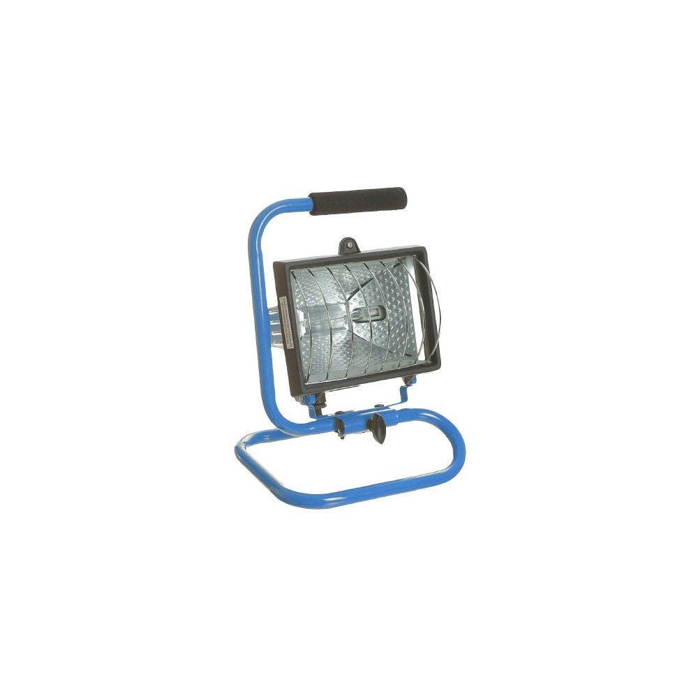 Laget i kraftig aluminium. Leveres med stativ, beskyttelsesgitter, koblingskabel 1 meter og halogenrør. Isolasjonsklasse IP44.