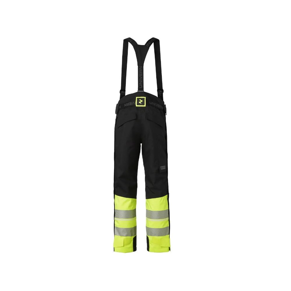 Completely wind and waterproof winter trousers in Dope-dye dyed textile. Lining in recycled polyester. High insulation value that keeps you warm on cold days. Good movement comfort with i.a. pre-bent trouser knees and with an extra high waistband in the back. Removable elastic belt and suspenders. 2-way zip in trouser leg all the way up to the waist. Adjustable foot width with snow lock. Internal knee protector pockets. Ruler pocket. Velcro fasteners for hammer holder. Reinforcement material on knees and leg ends. Two back pockets with flap and two front pockets with waterproof zips and soft, warming lining. Segmented reflectors and Signal Lucence tape for increased visibility and safety. Water column: 20,000mm. Breathability: 22,000g/m²/24h.