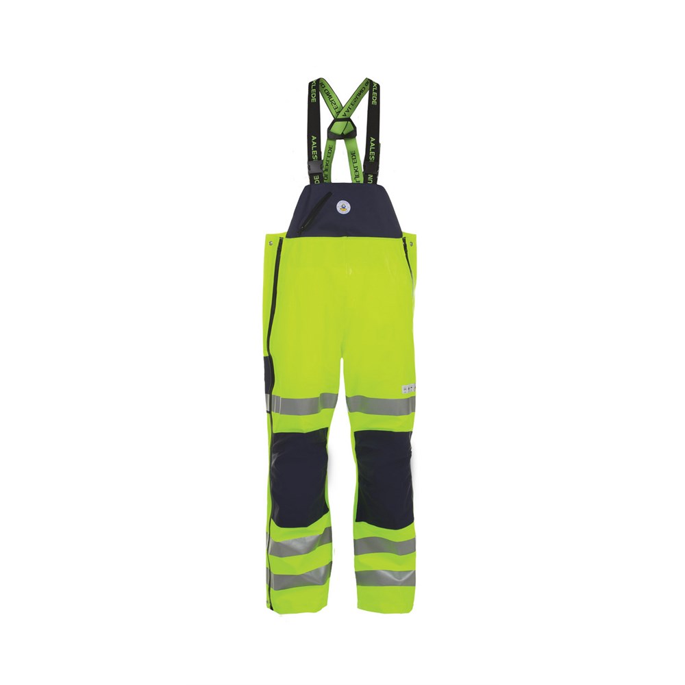 An elastomer-coated polyester 255 g / m2, strong material,. extra soft and comfortable, cold resistant .. sewed and welded seams 50mm reflex. Fitted. Harness pants with clip, zippered pocket on the yoke,. bidirectional water utter end plastic zipper outer leg, right up to. life, reinforced knee sections, ruler pocket and. knife pocket right thigh.
